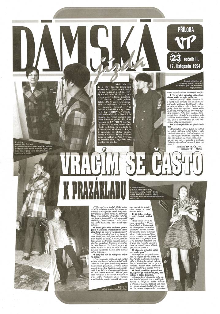 je již 33 let značkou modní návrhářky Zity Švířové, jejíž oděvy se vyznačují svoji originalitou, precizností střihu a nejvyšší kvalitou provedení vycházející z dokonale zvládnutého krejčovského řemesla.